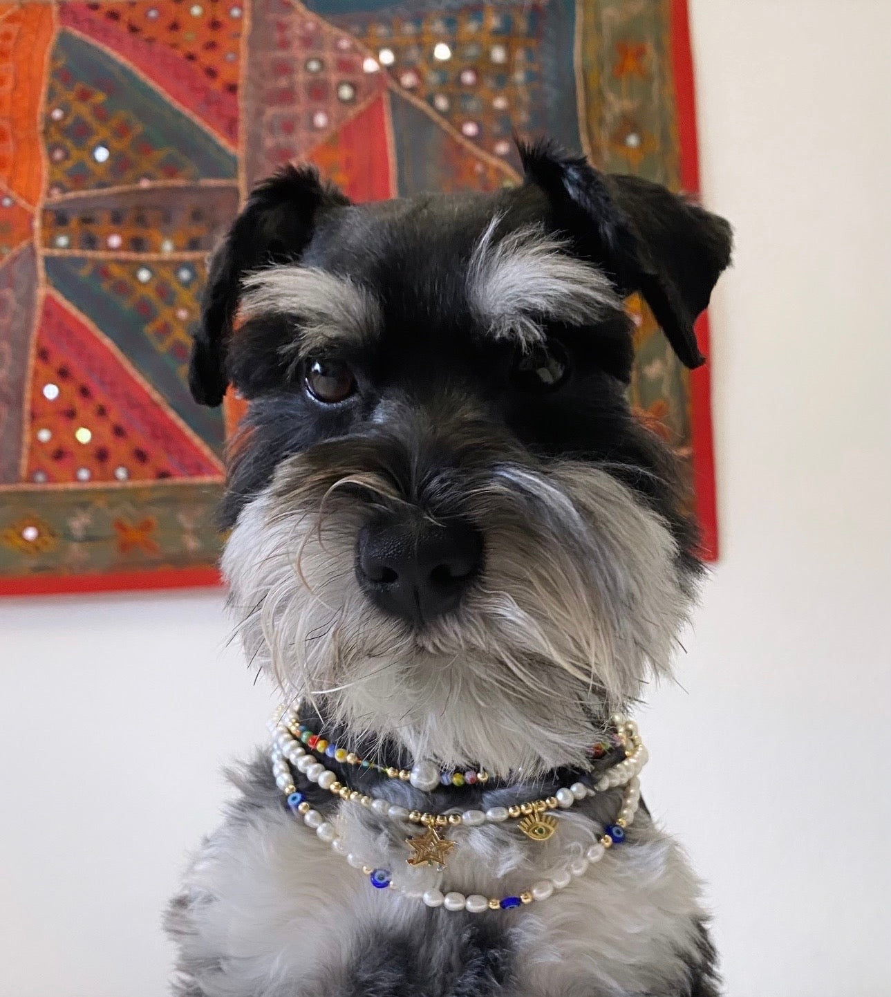 In the creation of Calima del Sol, Little Miss Cali’s presence is not just a story… it’s a cherished chapter. More than just Catalina’s best friend and loyal companion, Cali has been an angel in her life. From late nights spent by Catalina’s side during jewelry-making to beautifully modeling the necklaces, Cali has been a part of our journey.