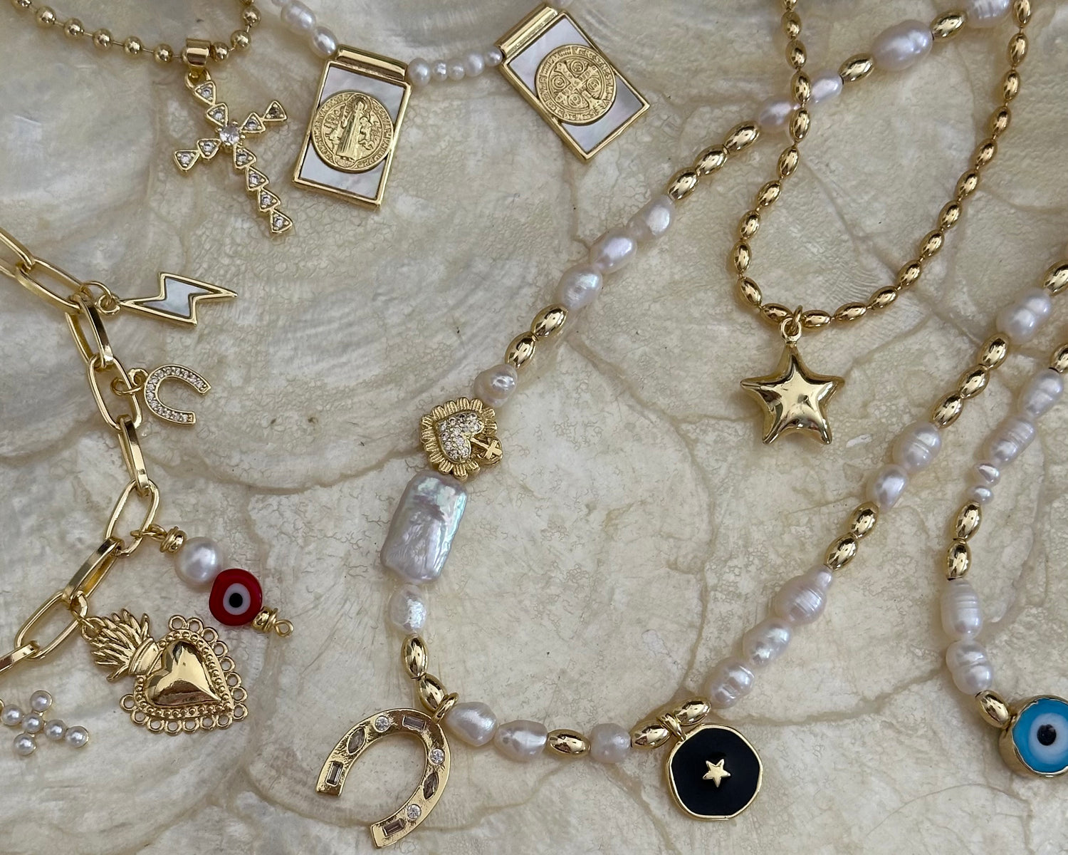 “DEL” is inspired by our founder’s faith. Catalina was raised Catholic and continues to grow her relationship with God. When you look at her work, you will find different charms that embody her faith. She loves to incorporate the Cross and the Virgin Mary in her designs. In Arabic, “Del” is a name that signifies “Servant of God.”